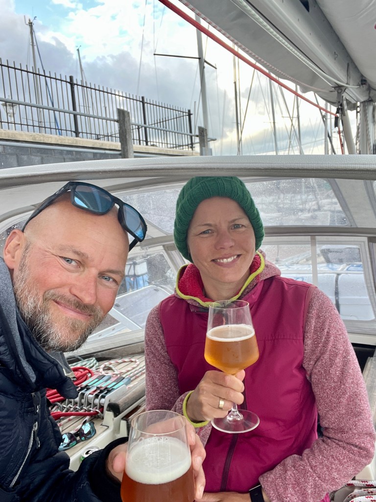 En velfortjent moleøl under ‘After Action Review’ i Arklow Marina, Irland.