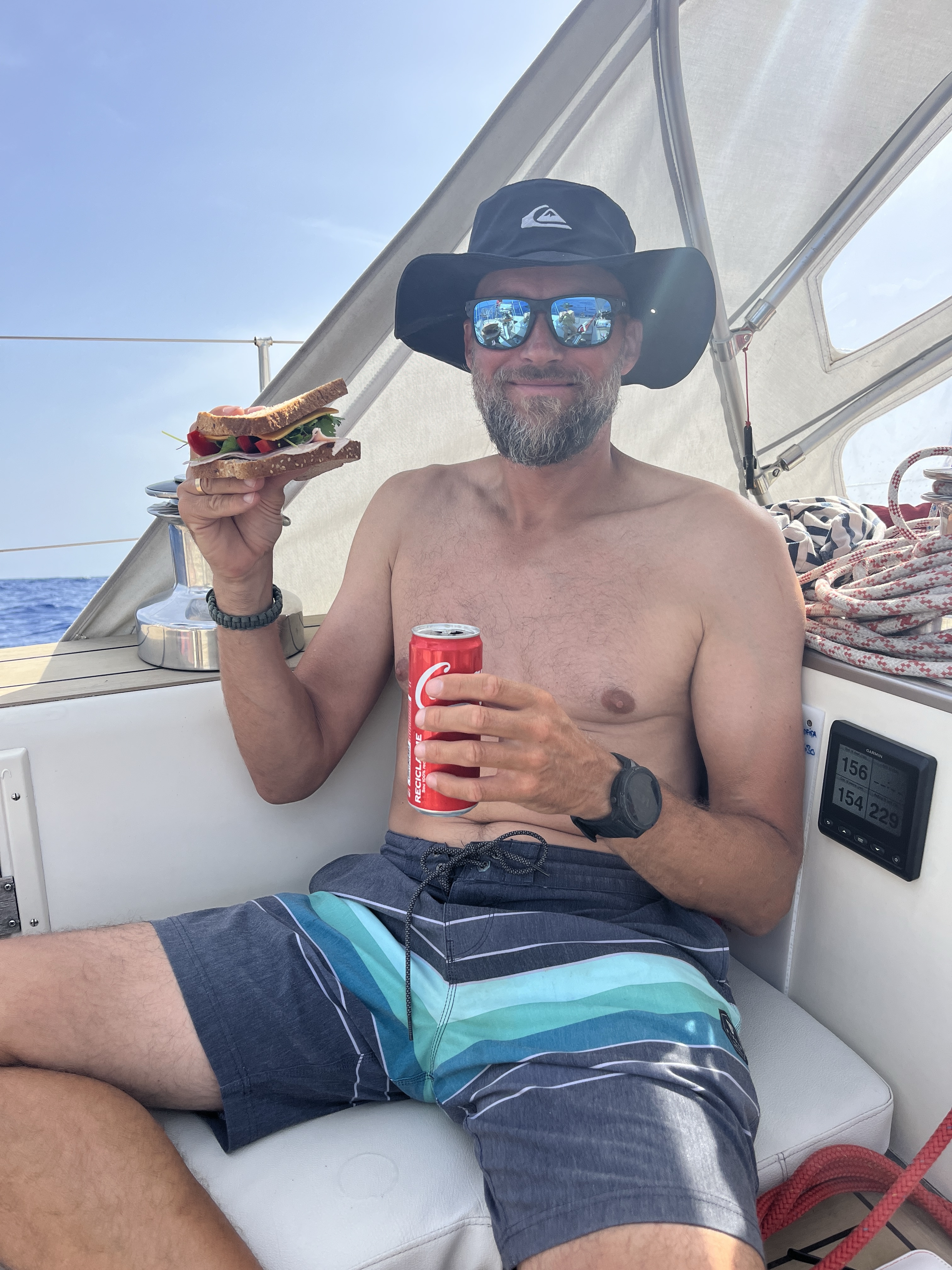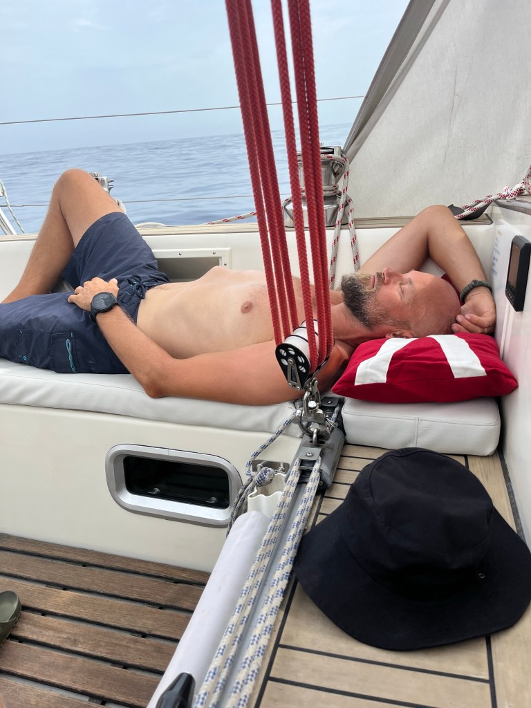 Det lyder måske hårdt med den relativt korte søvn, men det har fungeret fint indtil videre, og selve vagtskemaet er selvfølgelig noget, der altid kan rettes til efter forholdene. I dårligt vejr og under svære sejladsforhold vil vagterne nok blive forkortet, da det kan være hårdt at være koncentreret så længe ad gangen. Er der hårdt vejr, er vi selvfølgelig begge i cockpittet.