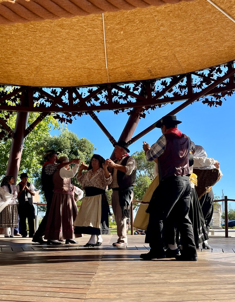 Da vi nåede til Nordspanien, mærkede vi for alvor at komme lidt væk fra alfarvej og den moderne livsstil. Der var langt mellem turisterne i de små havnebyer, og her røg vi nu ned i et endnu lavere gear og ind i en noget anden verden og tilgang til livet. Her leves livet stille og roligt – udenfor – i samvær med andre. I Spanien fik vi fornemmelsen af, at folk – i hvert fald udadtil, virker glade og tilfredse med deres liv. Der hersker en anden form for livsglæde, og folk virker mere til stede og som om, de lever mere i nuet og ‘bare er’ i stedet for, som vi nogle gange kan være slemme til derhjemme, hele tiden at se fremad, planlægge, efterstræbe det næste nye, hvad end det er et nyt job, en forfremmelse, den næste rejse til et nyt eksotisk sted, designertøj, – tasker, -sko eller -møbler. Når folk har fri, samles de på torvet, under træerne, på den lokale stamcafe. Det virker ikke altid til, at de kender hinanden, men de kommer hinanden ved. Og de danser! Alene eller i par, det er ligegyldigt, når der i weekenden spilles op på det lokale torv. Her fandt vi ingen materialistisk manifestation af dyre designertasker men derimod masser af rigdom i form af livsglæde, attitude og selvværd. Det var befriende, det var livsbekræftende, og det var misundelsesværdigt.