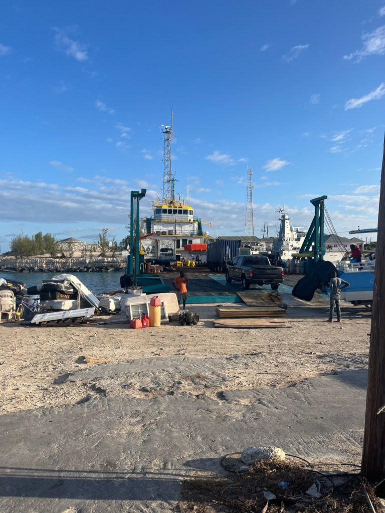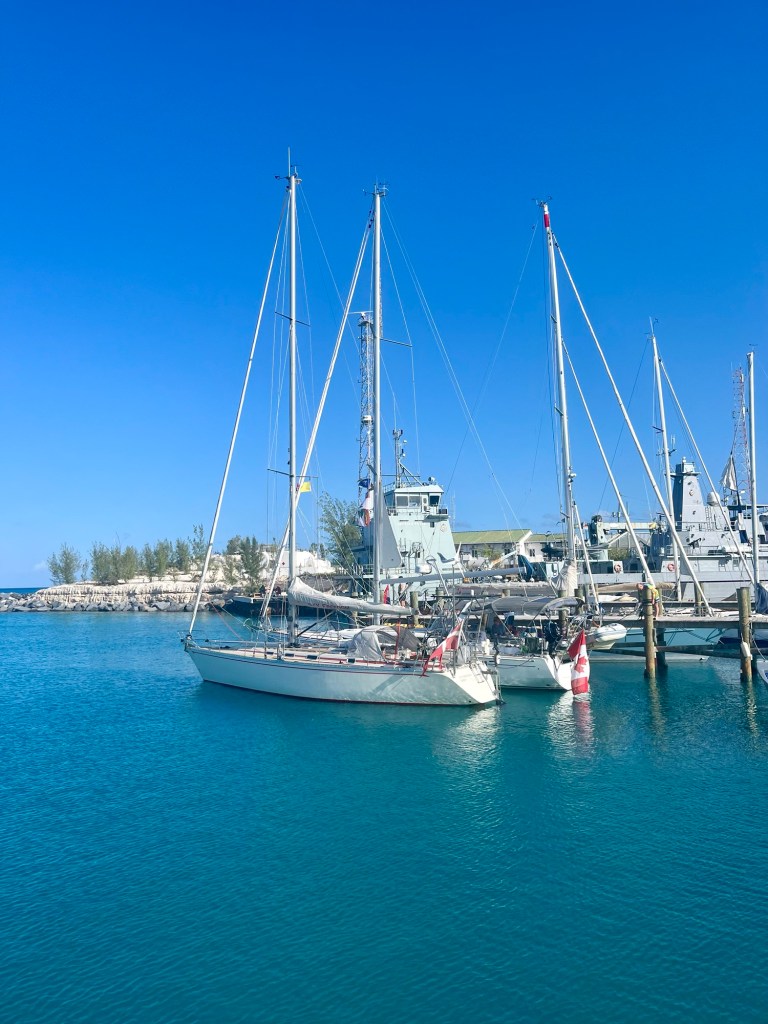 Det er ret spændende at sidde og følge med i livets gang på den lille havn, men det virker også til, at der er mere gang i den, end der plejer at være. Faktisk er der en livlig aktivitet. På trods af dens ringe størrelse har foruden sejlbådene også tre ‘krigsskibe’ fra Bahamas søværn fundet vej ind i havnen. De er af forskellig men ikke uanseelig størrelse og ligner mest af alt patruljeskibe, der bevogter farvandet. Så der er godt fyldt op!