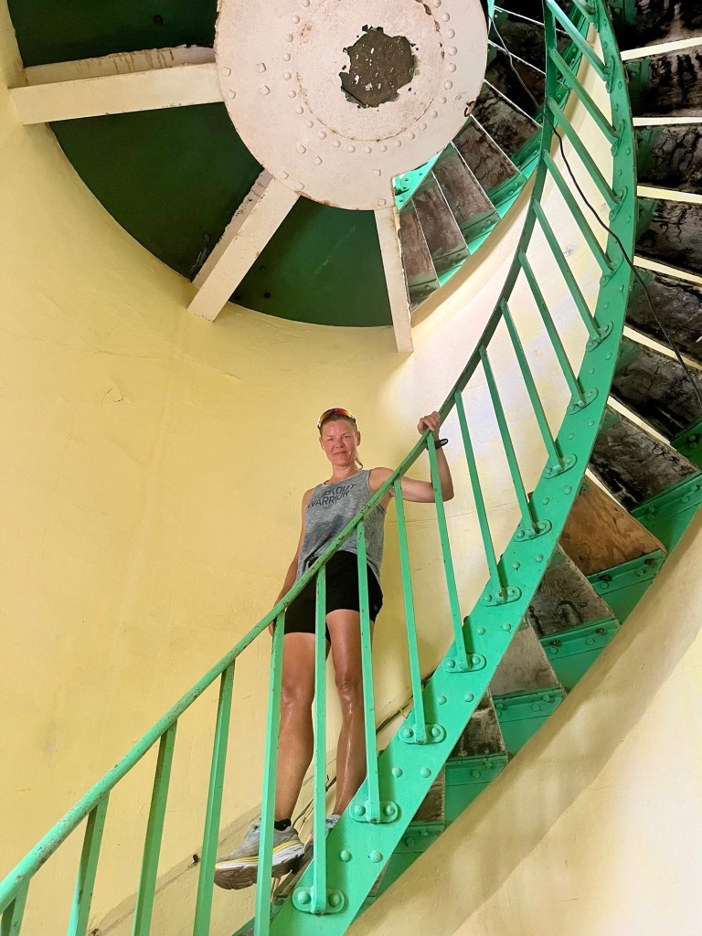 Det er en flot morgen, og vi lægger ud med en løbetur ud til et gammelt nedlagt fyr. Udsigten fra fyret er formidabel, farverne langs kysten er ubeskrivelige; alle nuancer af grøn og blå finder vi i det krystalklare vand alt efter dybde og bundforhold. Og overalt, hvor vi møder de lokale, overstrømmes vi bildyt og vinken. Der er en helt utrolig imødekommenhed på øen, vi føler virkeligt, at vi er mere end velkomne!