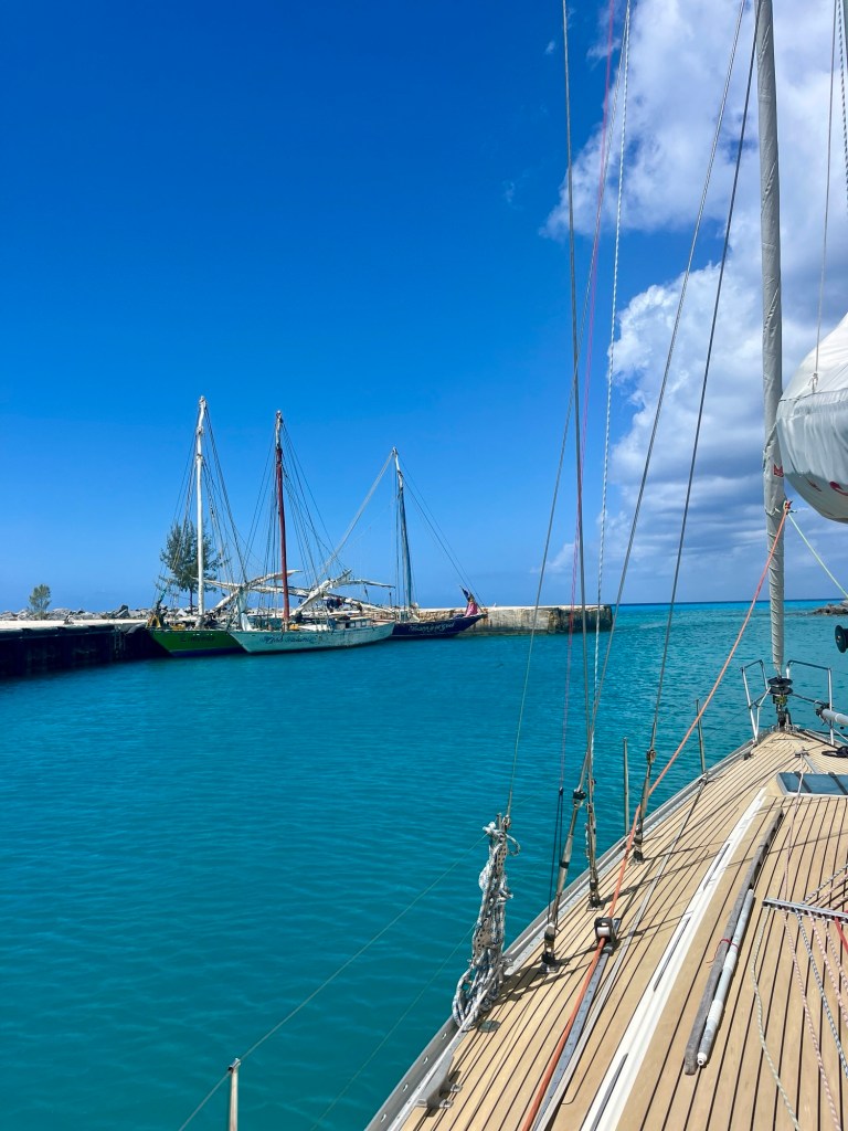 Efter en god nats søvn nyder vi morgenkaffen i cockpittet. Over for os i den modsatte ende af havnebassinet ligger to gamle træbåde, og som vi sidder og kigger, anduver endnu en gammel træbåd havnen. Det ser flot ud med de store asymetriske sejl, og sømændene ser ud til at kunne deres kram, men båden har ingen motor, og tillægningen bliver lidt kaotisk. Men med hjælp fra de to andre træbåde, får de lagt til. Vi diskuterer lidt, om der mon er tale om traditionelle fiskerbåde fra Bahamas, og om der skal være et klassisk regatta, siden der nu ligger tre både af samme typer her. Alle tre både er godt fyldt op med folk, men det er ikke ligefrem sejlertøj, de går rundt i.