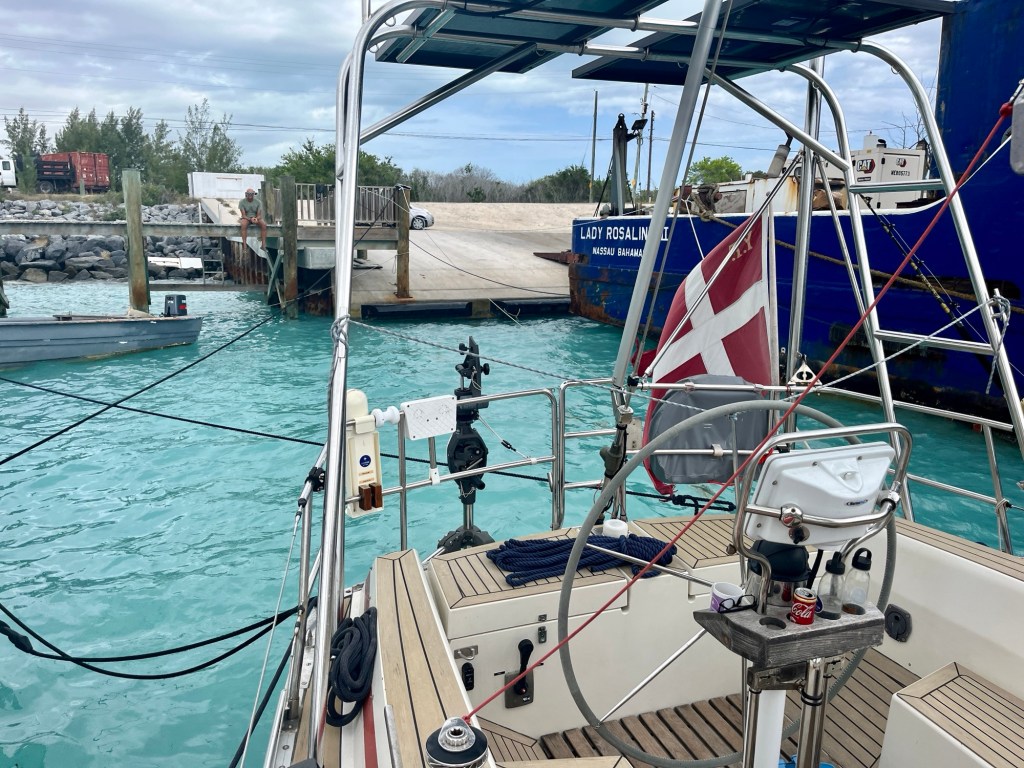 Dagen i dag tegner sig må alle måder til at blive god. Vejret er perfekt sejlvejr, vinden er i øst, og vi er klar til at sejle. Vi har overstået de sidste døgns strabadser, og vi er klar til sejle videre på nye eventyr i Bahamas’ ørige. Problemet er bare, at fragtskibet stadig ligger på tværs. Så nu ligger vi bare her og venter, og tålmodigheden sættes endnu en gang på prøve. Vi finder ud af, at fragtskibet planlægger på at sejle omkring kl. 13, og det lyder som sød musik i vores ører. Nu håber vi bare, at det ikke er jævnfør caribisk tidsregning, for så ved vi, at det bliver eftermiddag, inden vi kan smide fortøjningerne.