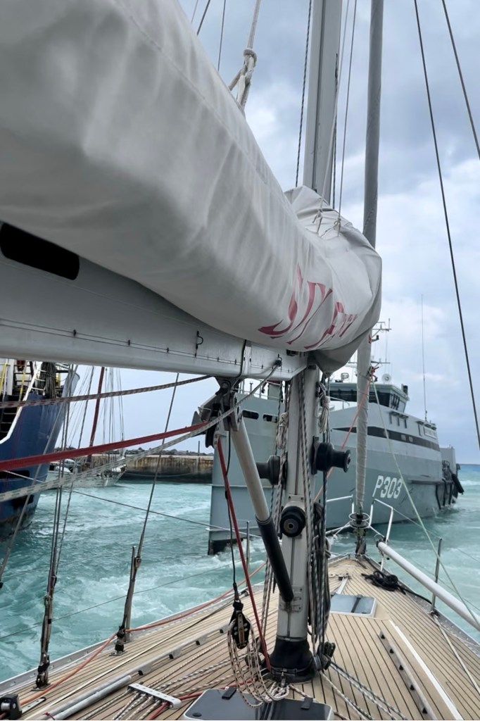 Vi taler lidt om, hvad vi har lært, og hvad vi ville have gjort anderledes; en form for ‘After Action Review’, som nuværende og tidligere soldater, der læser med, vil være bekendte med. Var det en fejl at blive i havnen? Hvorfor lagde vi os ikke for anker langs med kysten uden for havnen? Hvorfor sejlede vi ikke videre? Alle er det nærliggende spørgsmål at stille sig selv. Og alle var det overvejelser, vi gjorde os, mens det hele stod på. Men de, der lå for anker, lå ekstremt udsat. Var deres anker sluppet, havde de ramt kysten meget hurtigt. Og de var rystede, da vi talte med dem om aftenen, da det hårde vejr var redet af, det havde været en meget skræmmende oplevelse at ligge derude, hele stævnen og det forreste af båden havde været under vand, så meget var de blevet kastet rundt med. Vi kunne måske godt havde sejlet længere nordpå, men det var hele Bahamas, der var ramt af den hårde vind, og der ville have været få stede, vi kunne have fundet læ inden for en afstand af 100 sømil. Og man skal afholde sig fra at sejle kystnært på Bahamas om natten, det er det alt for lavvandet til og med alt for mange skær og banker. Så vi er kommet frem til, at vi valgte den mindst dårlige løsning for os selv, og at vi slap billigt.