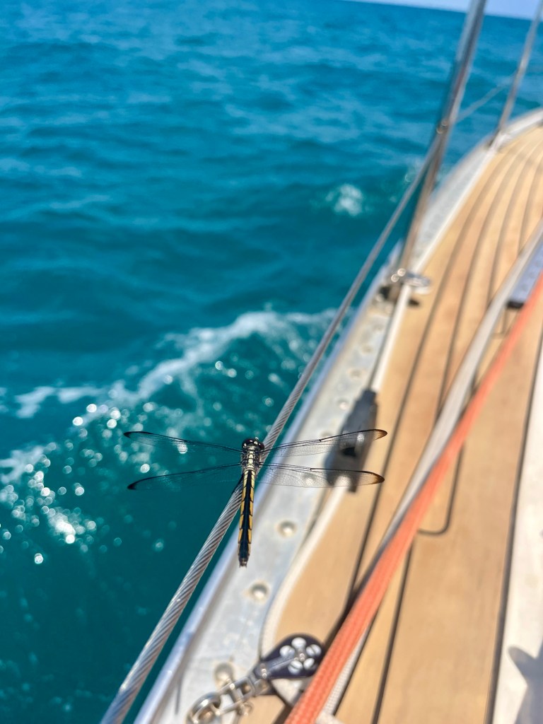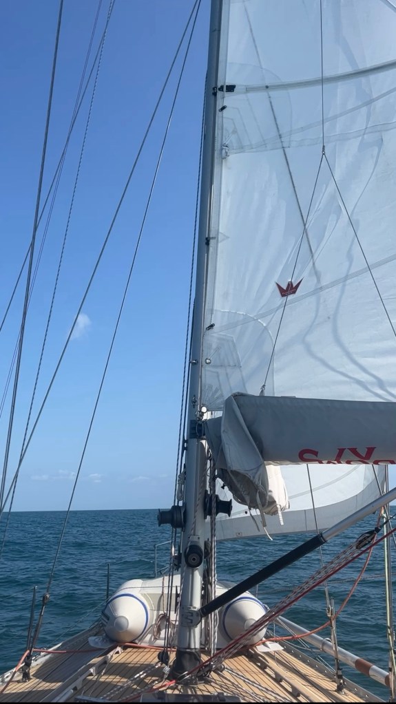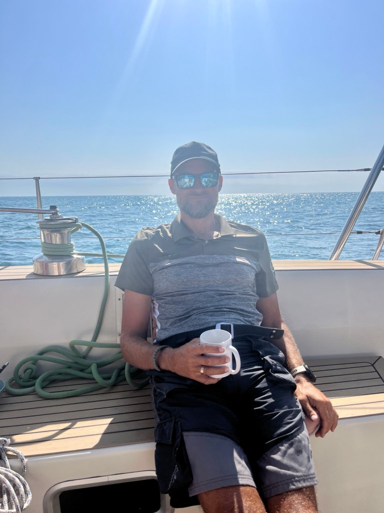 Omkring klokken 11 er vinden faldet til 8-10 sekundmeter, og det er tid til en omgang velfortjent morgenmad. Klokken 13 tiltager vinden endnu en gang, men denne gang uden advarsler om ‘thunderstorms’ og tornadoer. Vi når op på 15-20 sekundmeter igen, men det føles knap så voldsomt, og vi varmer os ved tanken om, at ankeret i morges holdt i vind, der var væsentligt værre. Så vi slapper af i det, drikker kaffe og forpupper os lidt, mens vejret endnu en gang giver os en rusketur.
